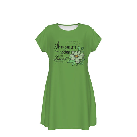 T-Shirt Bible Verse Floral Scripture Proverbs 31:30 Design - Oversized Short Sleeve T-shirt Dress For Women - Green