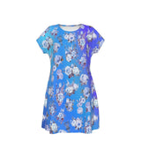 Women's Oversized Short Sleeve T-shirt Dress For Women - With Vibrant Purple Floral Pattern