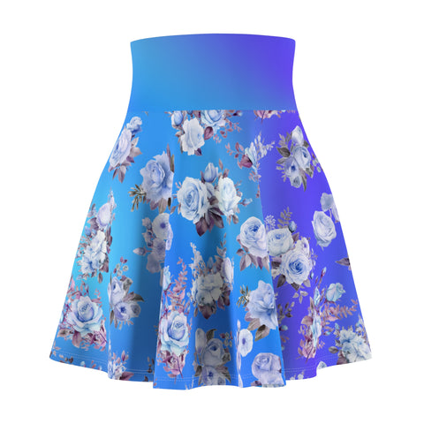 Blue Floral Skater Skirt - Gradient Background - Soft Floral Print - Chic Skater Skirt with Soft Blue Flowers (AOP)