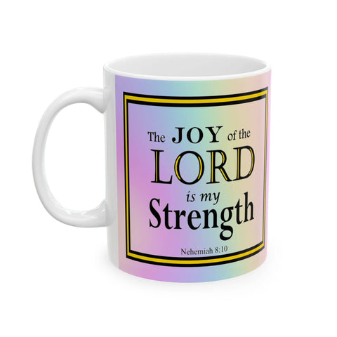 Imagine starting your day with a comforting sip of coffee and a powerful verse reminding you of strength, hope, or resilience. It's like a mini-devotional moment in the midst of your busy day, providing a touch of spiritual grounding and positivity. Add a touch of joy and inspiration to your morning routine with this beautiful ceramic coffee mug! Featuring a stunning design of a rainbow background and an inspirational Bible verse, this mug is sure to uplift your spirits with every sip. Made with high-quality ceramic, this mug is both durable and stylish, making it the perfect addition to your kitchen or as a thoughtful gift for a loved one. Start your day off on a positive note with this one-of-a-kind piece!