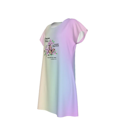 Transform your sleepwear collection with our Cute Oversized T-shirt featuring the uplifting message of 2 Corinthians 5:17: "Therefore, if anyone is in Christ, he is a new creation." This New Creation Bible Verse Graphic beautifully captures the essence of renewal and hope, making it the perfect addition to your cozy nights. Crafted as a Women's Short Sleeve Nightshirt, this stylish sleep dress drapes elegantly over your figure, ensuring a comfortable fit for any night in or casual outing. The adorable pastel rainbow ombre gradient adds a touch of calming beauty, making this t-shirt not just a sleep essential but also a fashionable statement. Embrace comfort and faith with this versatile piece – perfect for lounging, sleeping, or enjoying a lazy day at home! The dress can be suitable for ladies of all body shapes; Nice fabric can provide with all-day ease and comfort