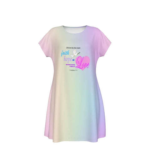 Faith Hope Love Oversized T-Shirt | Pastel Rainbow Gradient Tee, Inspirational Bible Verse, Women's Short Sleeve Nightshirt, Sleep Dress