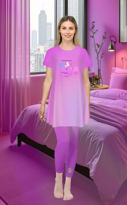 Faith Hope Love Oversized T-Shirt | Pink Gradient Tee with Inspirational Bible Verse, Women's Short Sleeve Nightshirt, Sleep Dress