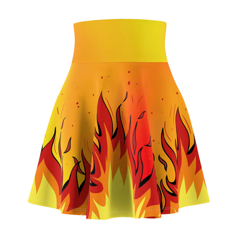 Fiery Flames Skater Skirt - Flame Patterned Flared Mini Skirt (AOP)