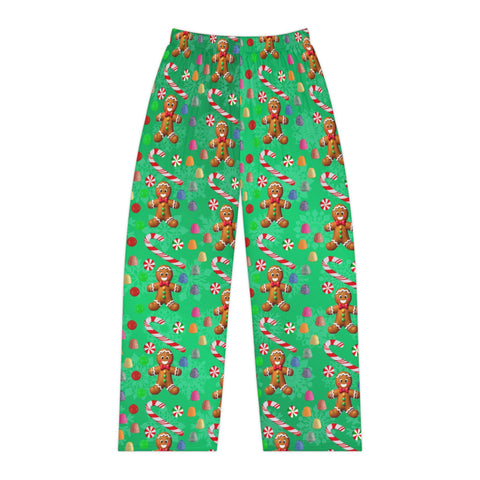 Green Christmas Gingerbread Man Women's Pajama Pants, Holiday Candy Sleepwear, Festive Lounge Bottoms, Xmas PJ Trousers, Winter Nightwear
