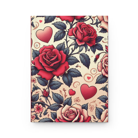 Hardcover Journal Matte, Hearts and Roses Design, Notebook, Diary, Sketchbook, Gift for Writers, Bullet Journal, Valentine's Day