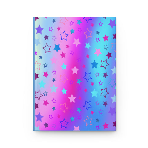 Hardcover Matte Journal with Pink, Blue & Purple Stars on Gradient Background – 150 Lined Pages