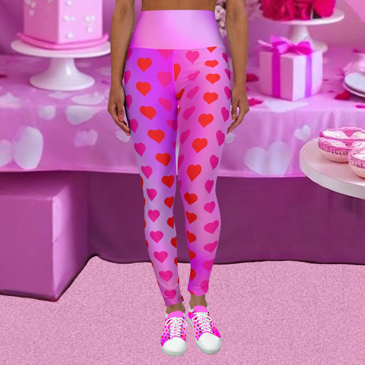 High Waist Leggings - Skinny Fit Yoga Pants - Heart Print