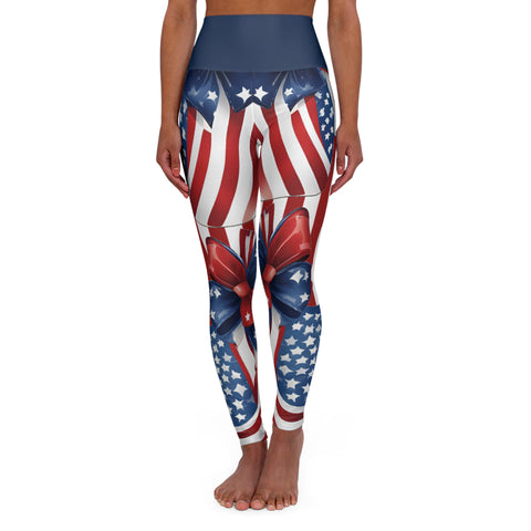 High Waist Stars and Stripes Leggings, Patriotic USA Independence Day Designs