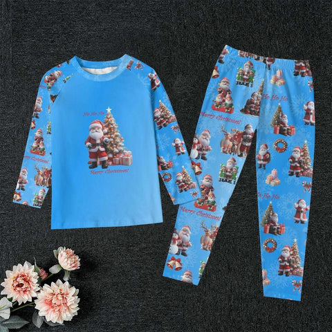 Kid's Blue Santa Claus Pajamas Set - Blue Background - Christmas Sleepwear, Matching family outfit, long sleeves loungewear, Holiday 2 pc