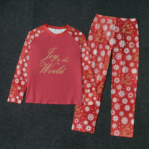 Men's Red Christmas Holiday Sleepwear Set, Festive 'Joy to the World' Quote - Matching family pajama outfit, long sleeves loungewear, 2 pc