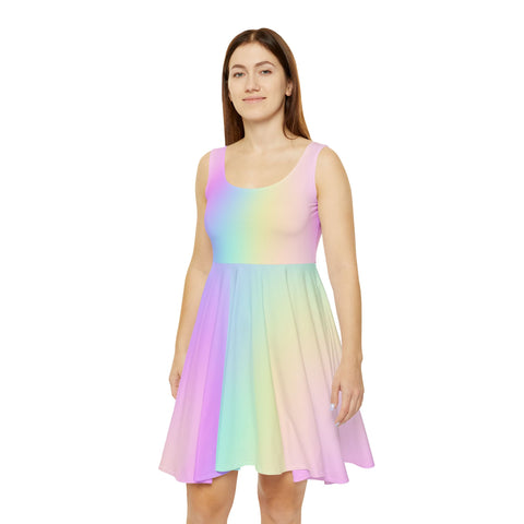 Women’s Pastel Rainbow Gradient Skater Dress – Light, Flowy & Perfect for Summer