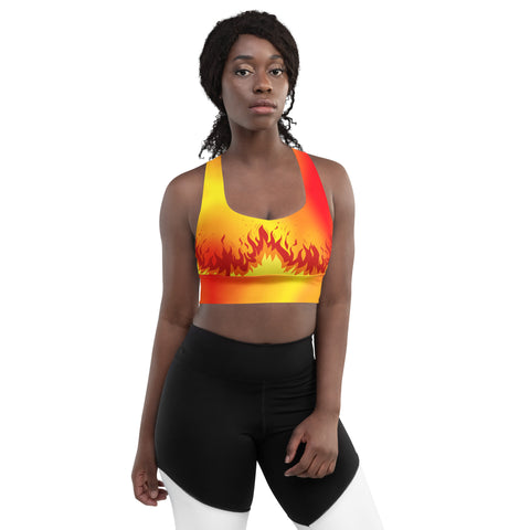 Flaming Fire Recycled Longline Sports Bra: Workout Activewear | Bold Flame Design Workout Top
