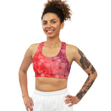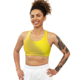 This seamless sports bra features green vine leaves on a gradient green background, giving off a fresh and vibrant vibe. Perfect for the gym, training, or everyday wear, this medium support sports bra is made from moisture-wicking material and stretchy fabric for enhanced performance. Ideal for active individuals looking for both comfort and style.
