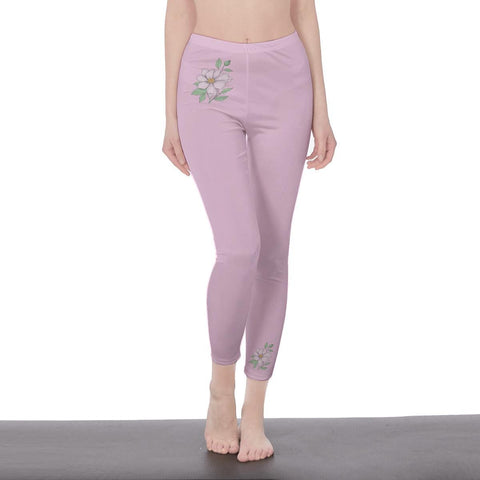 Soft Pink Stylish Floral Decal Casual Solid Leggings for Women - Exercise pants, Skinny Fit, Sporty, Yoga Pants - Comfy Everyday sportswear