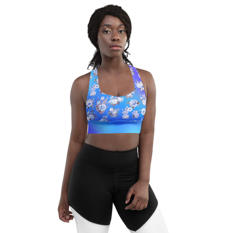Stylish Blue Floral Longline Seamless Recycled Sports Bra | Sustainable & Supportive Design