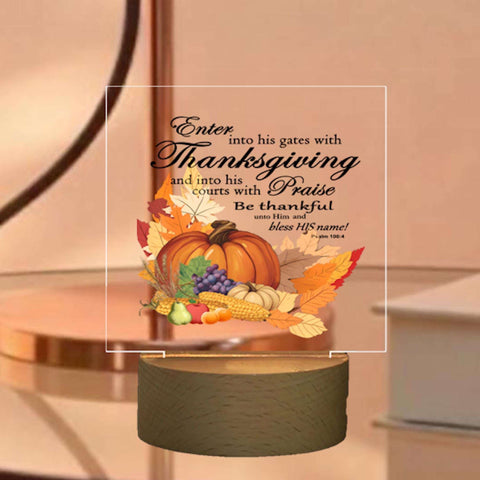 Thanksgiving Bible Verse Cornucopia Design on Square Acrylic Board with LED Light – Perfect Holiday Decor!