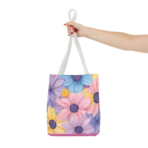 Available in 3 sizes to add both functionality and style, these custom-printed tote bags come with multiple handle colors to match your designs. Made with spun polyester, these bags feature double-stitched seams, cotton webbing straps, and nonwoven laminate lining for high-end durability. Your all-over print is created with dye sublimation for high-end visuals.